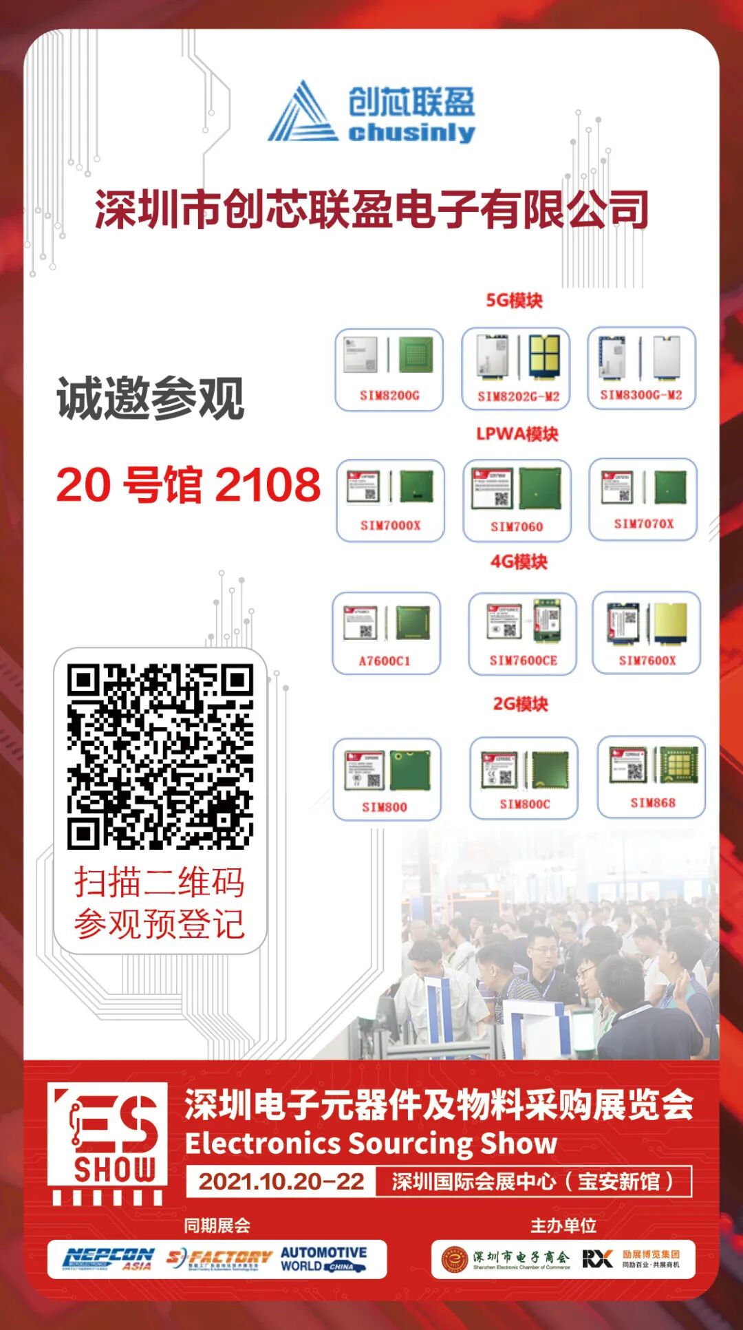 2021 深圳電子元器件及物料采購展覽會(huì),將于10月20-22日在深圳國際會(huì)展中心(寶安)閃亮登場,隆重開幕。深圳市創(chuàng)芯聯(lián)盈電子有限公司期待你的到來,展位號2108,趕緊收下此邀請函,碼上登記,我們不見不散!
