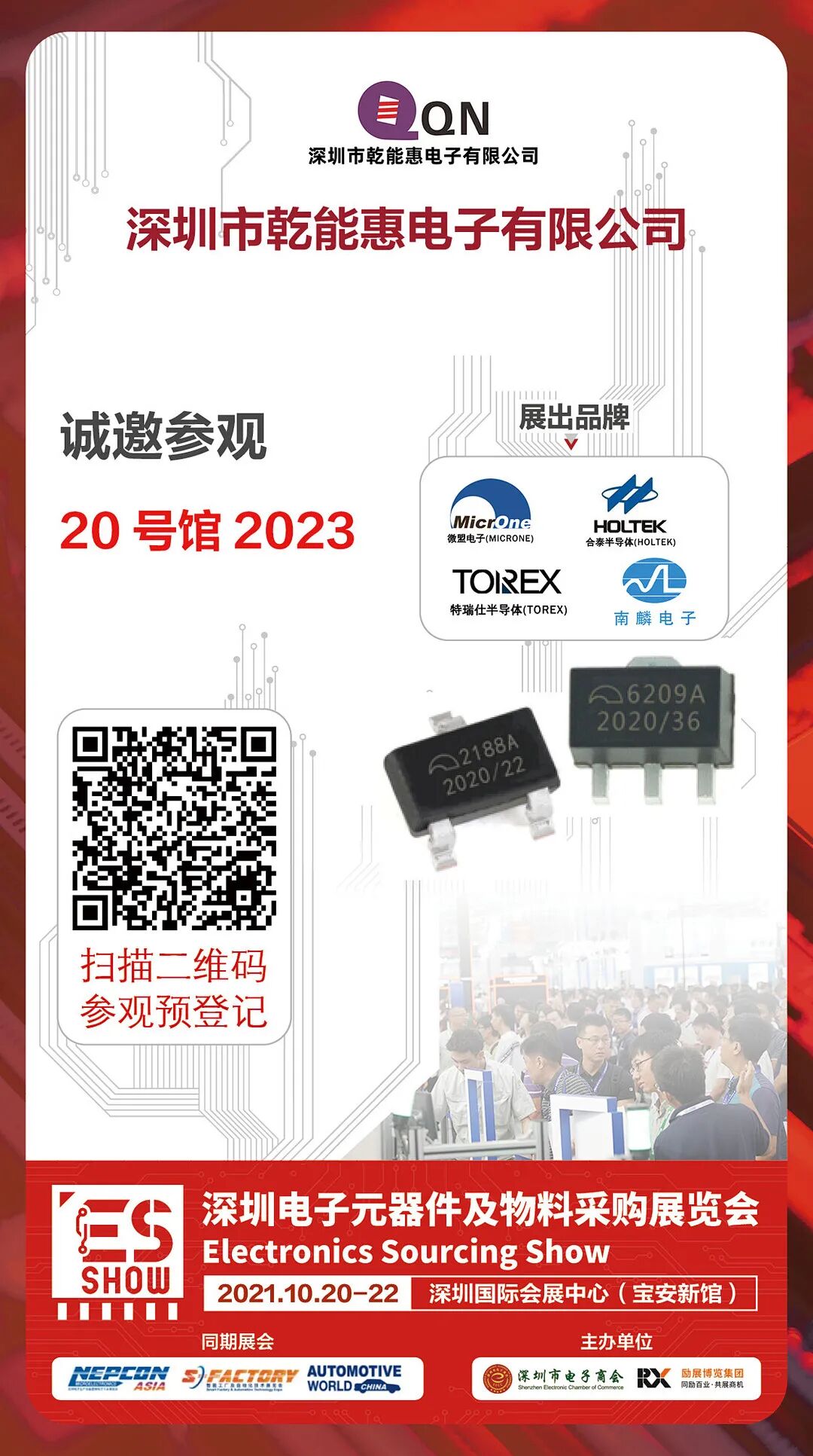 2021 深圳電子元器件及物料采購展覽會,將于10月20-22日在深圳國際會展中心(寶安)閃亮登場,隆重開幕。深圳市乾能惠電子有限公司期待你的到來,展位號2023,趕緊收下此邀請函,碼上登記,我們不見不散!