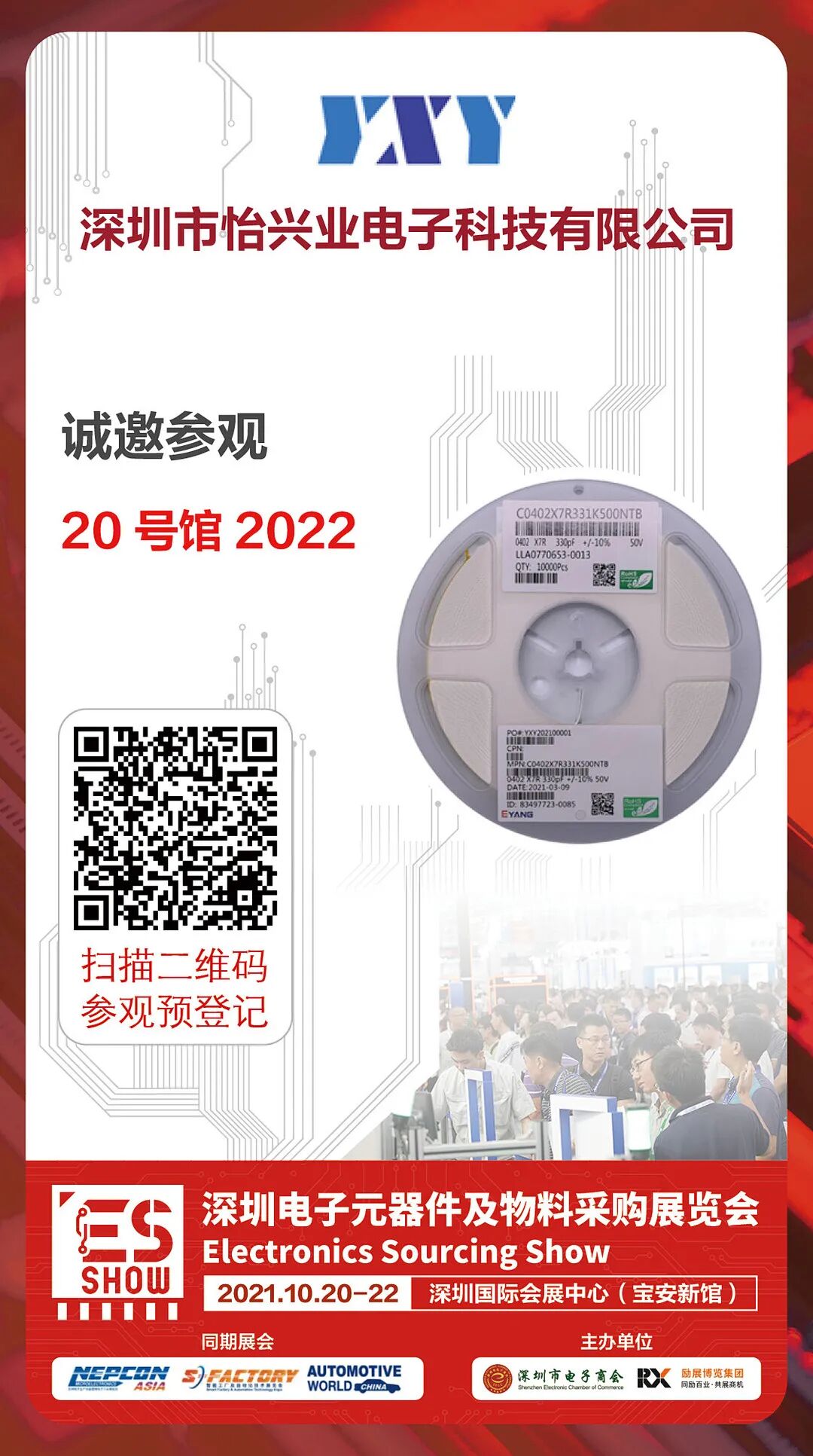 2021 深圳電子元器件及物料采購展覽會,將于10月20-22日在深圳國際會展中心(寶安)閃亮登場,隆重開幕。深圳市怡興業(yè)電子科技有限公司期待你的到來,展位號2022,趕緊收下此邀請函,碼上登記,我們不見不散!