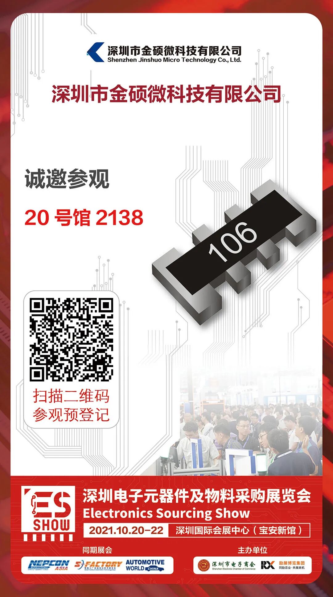 2021 深圳電子元器件及物料采購展覽會,將于10月20-22日在深圳國際會展中心(寶安)閃亮登場,隆重開幕。深圳市金碩微科技有限公司期待你的到來,展位號2138,趕緊收下此邀請函,碼上登記,我們不見不散!