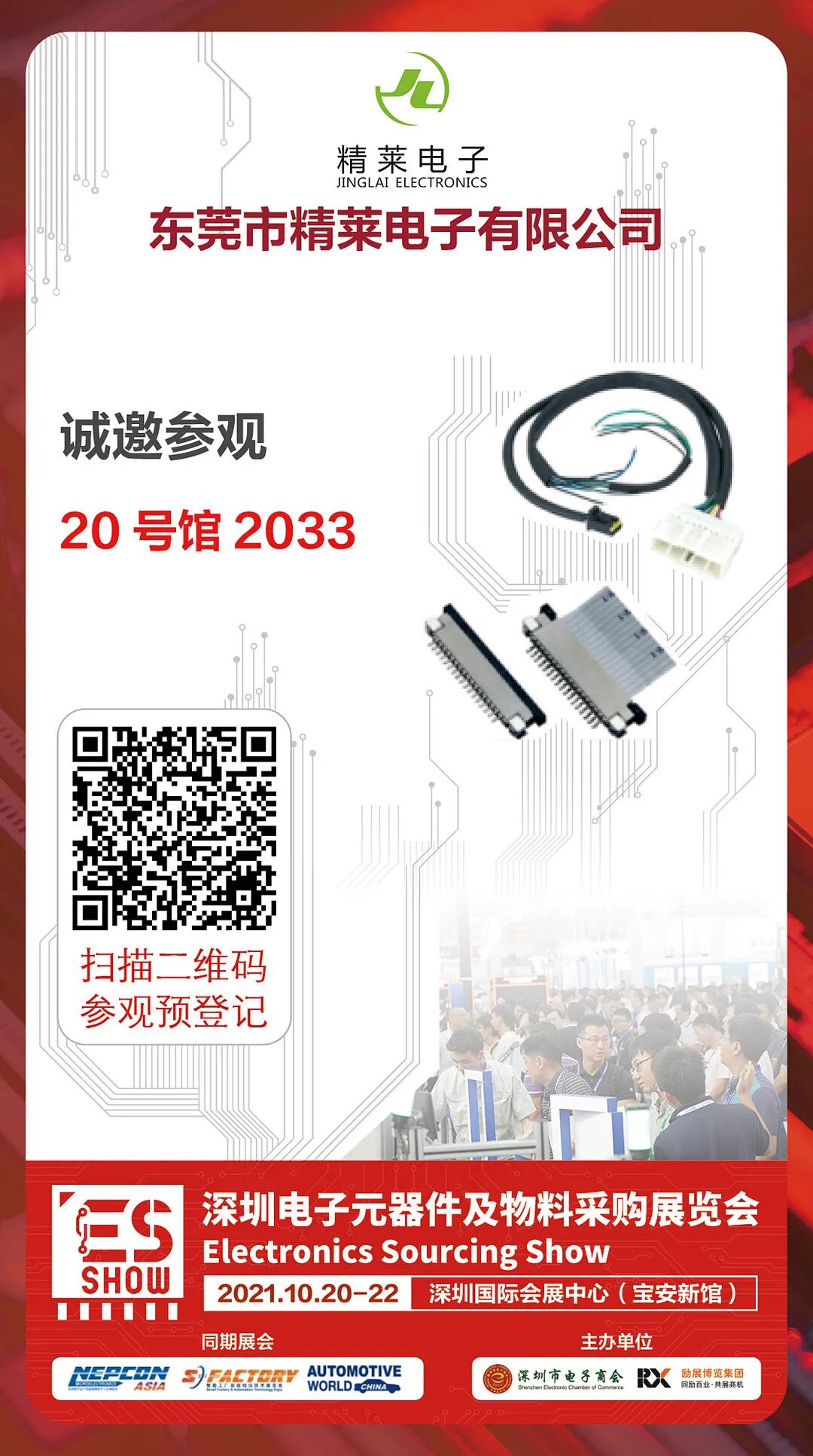 2021 深圳電子元器件及物料采購展覽會(huì),將于10月20-22日在深圳國際會(huì)展中心(寶安)閃亮登場,隆重開幕。東莞市精萊電子有限公司期待你的到來,展位號2033,趕緊收下此邀請函,碼上登記,我們不見不散!