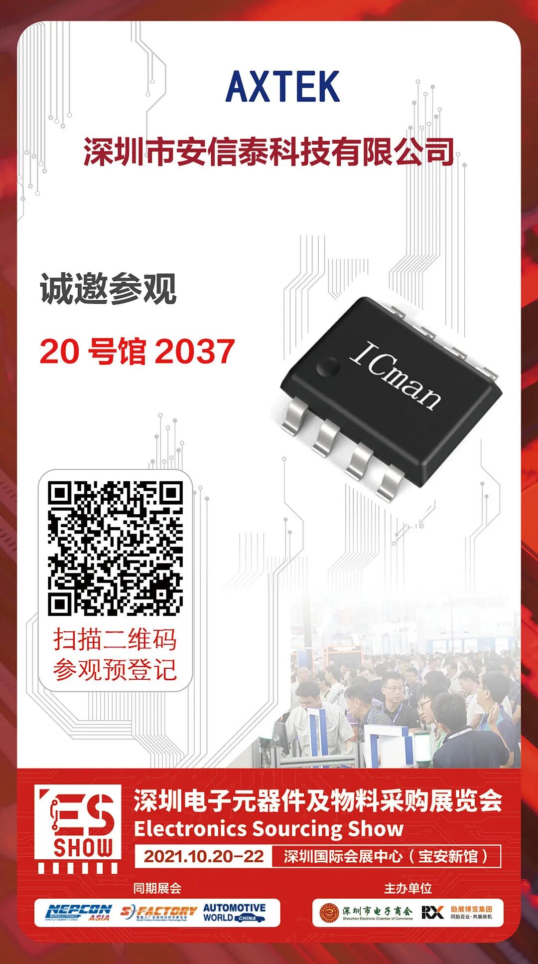 2021 深圳電子元器件及物料采購展覽會,將于10月20-22日在深圳國際會展中心(寶安)閃亮登場,隆重開幕。深圳市安信泰科技有限公司期待你的到來,展位號2037,趕緊收下此邀請函,碼上登記,我們不見不散!