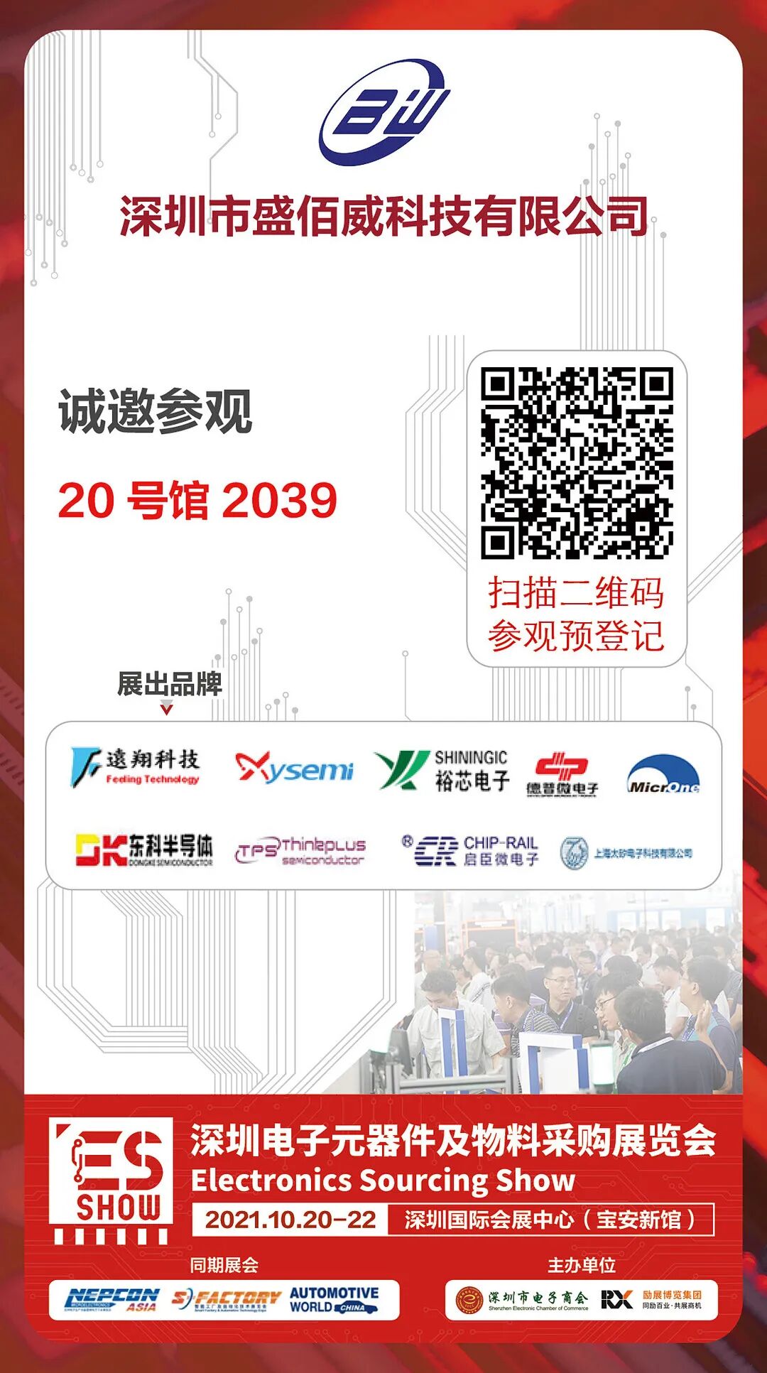 深圳市盛佰威科技有限公司 公司成立于二零一二年,從事電子元器件銷售,主要經(jīng)營品牌有微盟,啟臣微,太矽,遠(yuǎn)翔,賽芯微,南麟,蕊源,藍(lán)箭,拓微等,位于深圳市福田區(qū),公司一直以“現(xiàn)貨”銷售為經(jīng)營理念。 公司所經(jīng)營產(chǎn)品廣泛但不限用于藍(lán)牙耳機(jī),充電器,電源類產(chǎn)品,數(shù)碼產(chǎn)品,移動電源,車載等行業(yè)的電子元器件暢銷市場。 參展品牌: 應(yīng)用領(lǐng)域: 藍(lán)牙耳機(jī),充電器,電源類產(chǎn)品,數(shù)碼產(chǎn)品,移動電源,車載等 碼上登記 2021 深圳電子元器件及物料采購展覽會,將于10月20-22日在深圳國際會展中心(寶安)閃亮登場,隆重開幕。深圳市盛佰威科技有限公司期待你的到來,展位號2039,趕緊收下此邀請函,碼上登記,我們不見不散! 坐穩(wěn)!碼上啟程,搭乘開往ES SHOW 2021的列車!