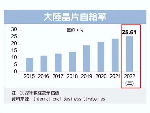 甚至預測到2026年時,中國大陸的芯片自給率大約也只有21.2%,遠遠達不到2025年就實現(xiàn)70%的目標。